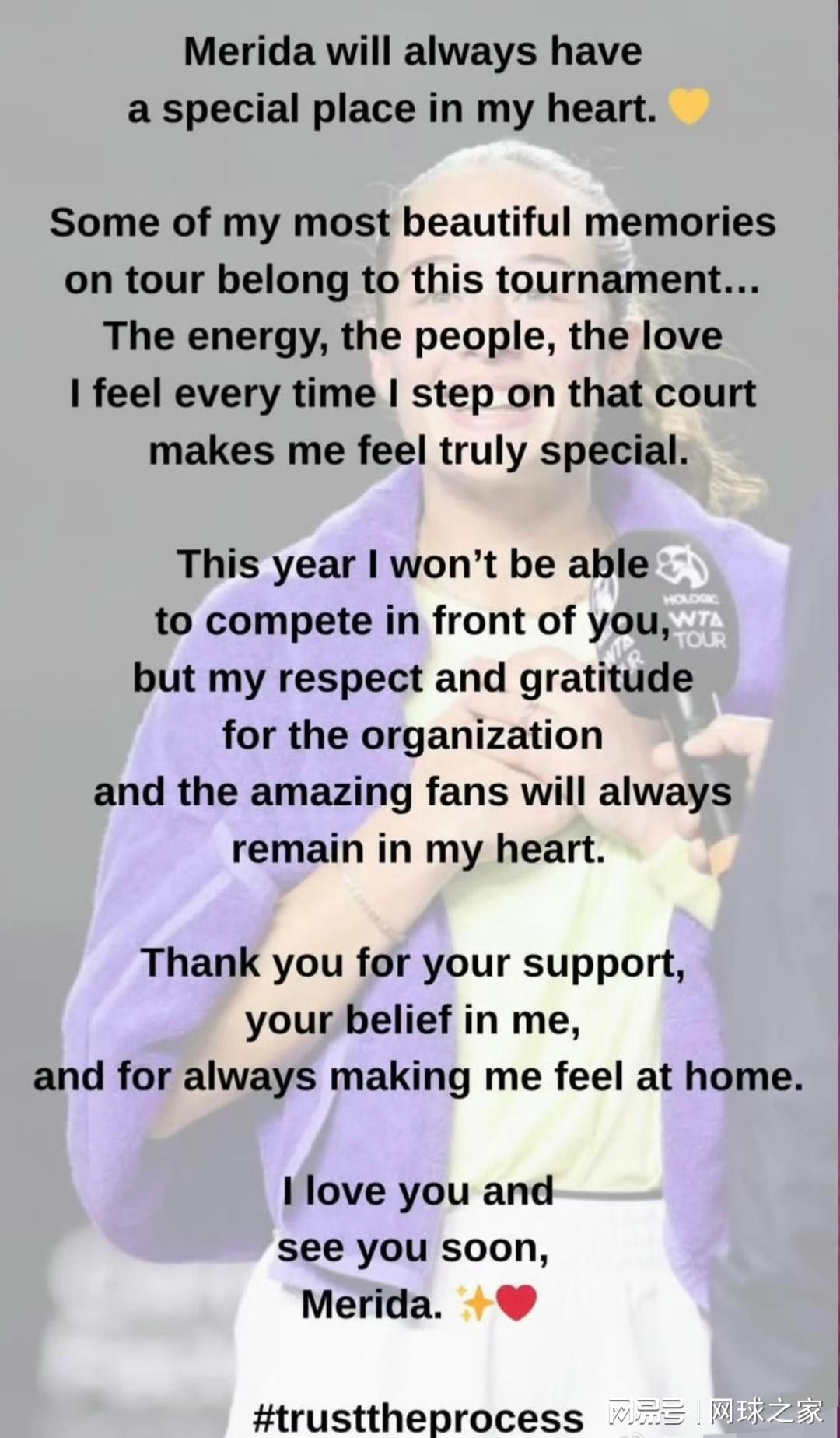 现在一些人为郑钦文接下来的命运担忧时,也对梅里达赛事方寄予了无限同情。